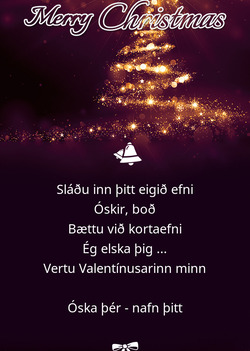 Nafn Bílaspa ehf ... Kæru viðskiptavinir okkur langar að óska ykkur og fjölskyldum ykkar gleðilegrar hátíðar og gæfu á komandi ári. Efnið þitt